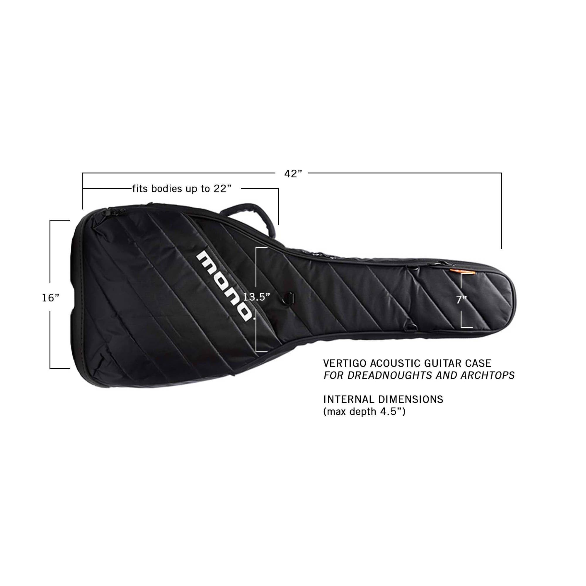 Integral ABS panels deliver hardcase protection at a fraction of the weight. (MONO cases weigh in at about 75% less than their hardcase counterparts.) The reinforced outer shell of the Vertigo™ absorbs and deflects hard impact away from the vulnerable areas of the guitar.