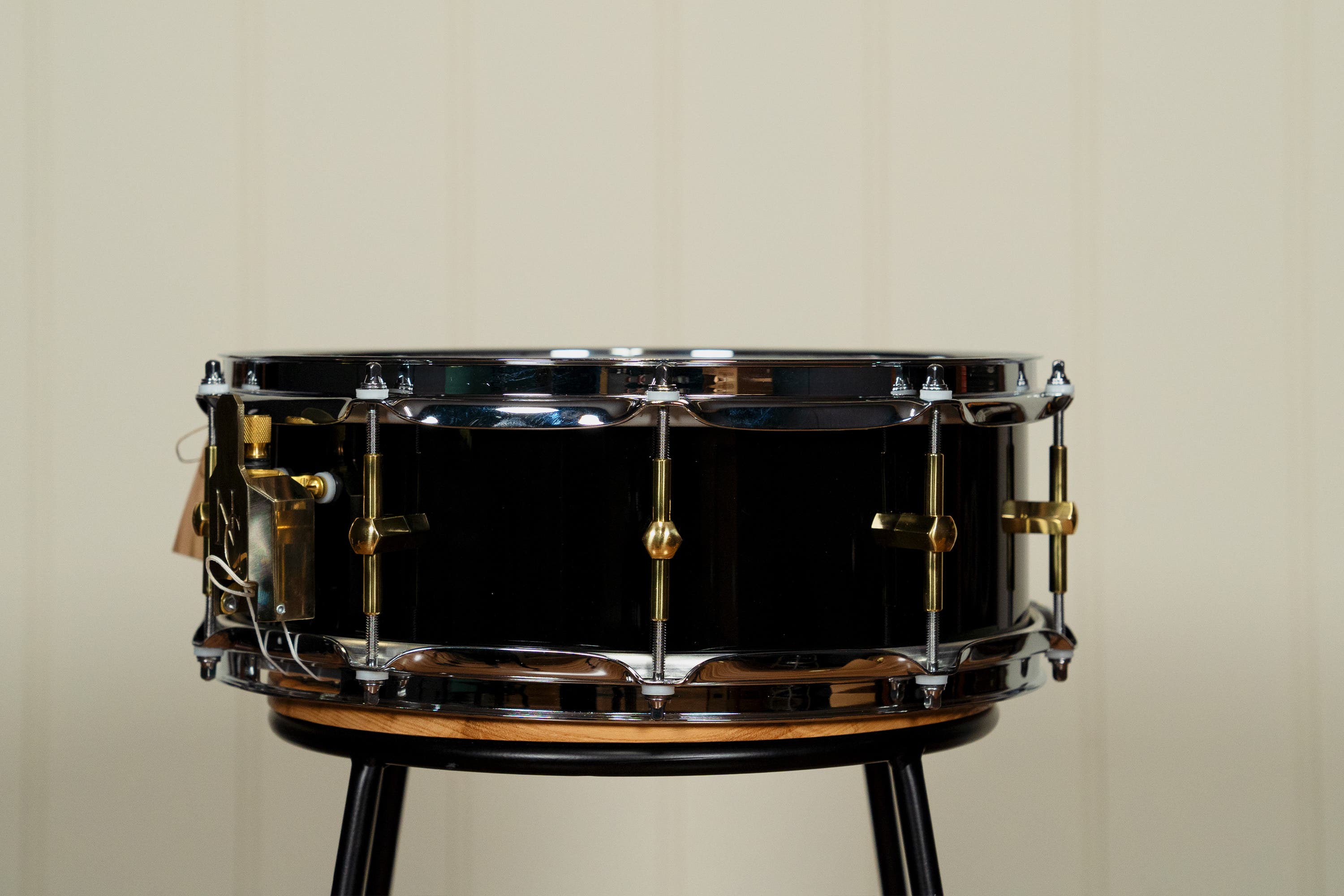 5 x 14" Classic Maple Snare - Piano Black Gloss - Brass Hardware - Flanged Chrome Hoops
