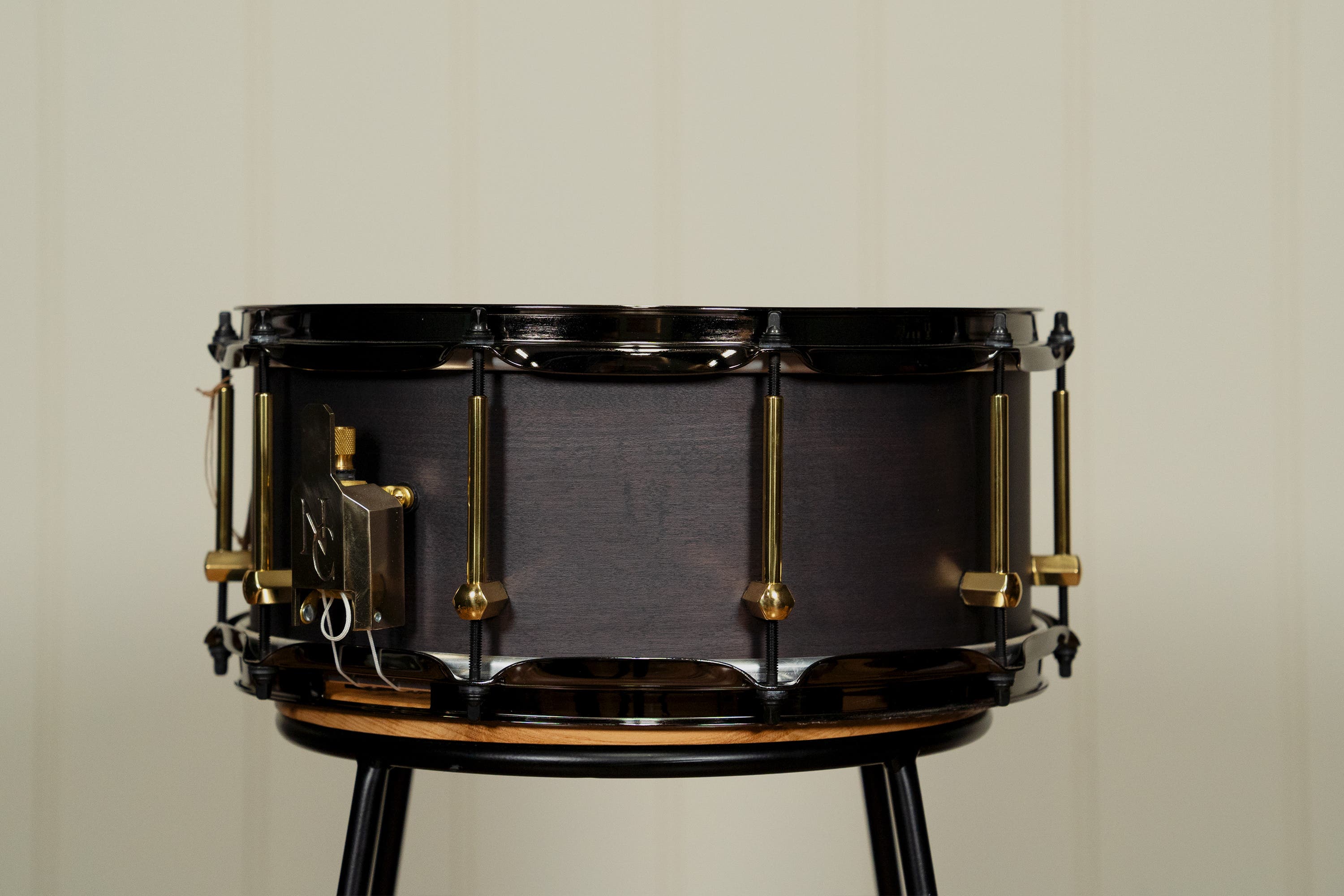 6 x 14" Classic Maple Snare - Blackwash Matte - Brass Hardware - Flanged Black Hoops - Woodburn Logo