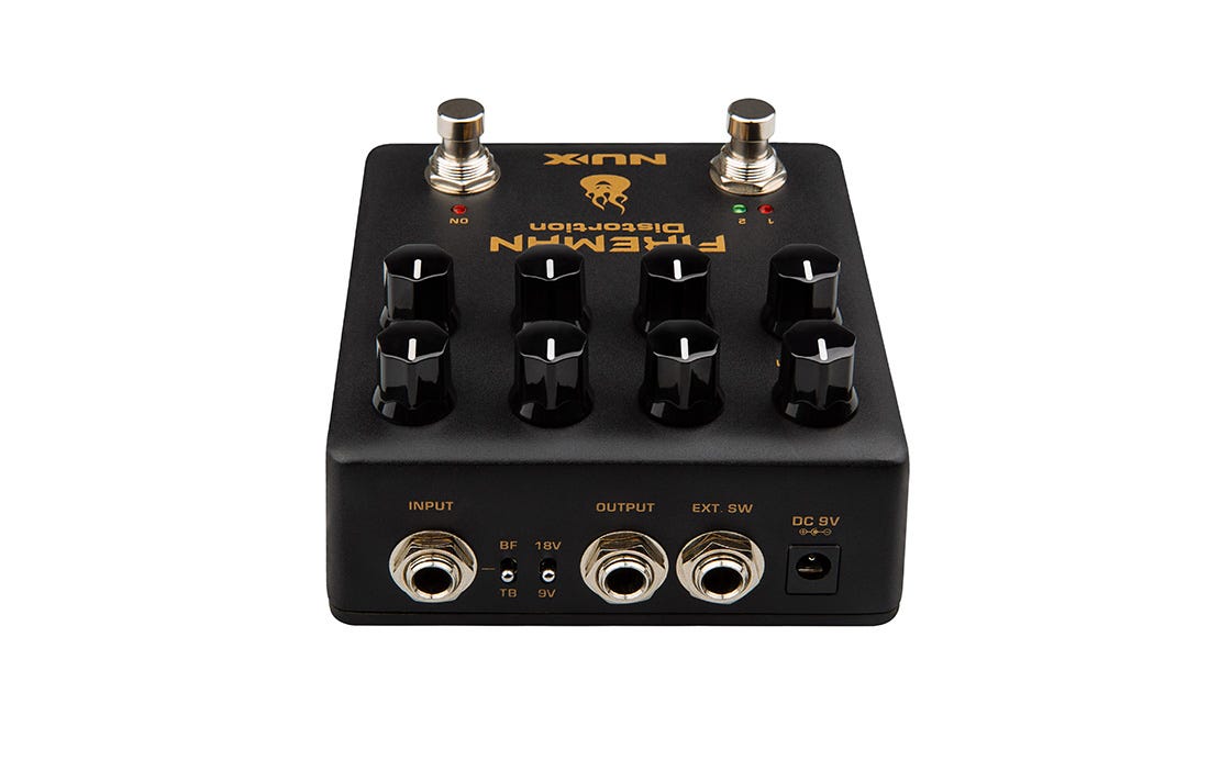 FIREMAN is based on the legendary amplifier builder's famous distortion pedal. It's a very amp-like distortion pedal with Modern Brown Sound. We designed it with 2 independent VOLUME, GAIN control knobs to fit rhythm and solo applications. FIREMAN offers a True-bypass / Buffer-bypass toggle switch, and a 9V / 18V toggle switch. The 18V position doubles the working voltage inside to give you wider dynamic range.