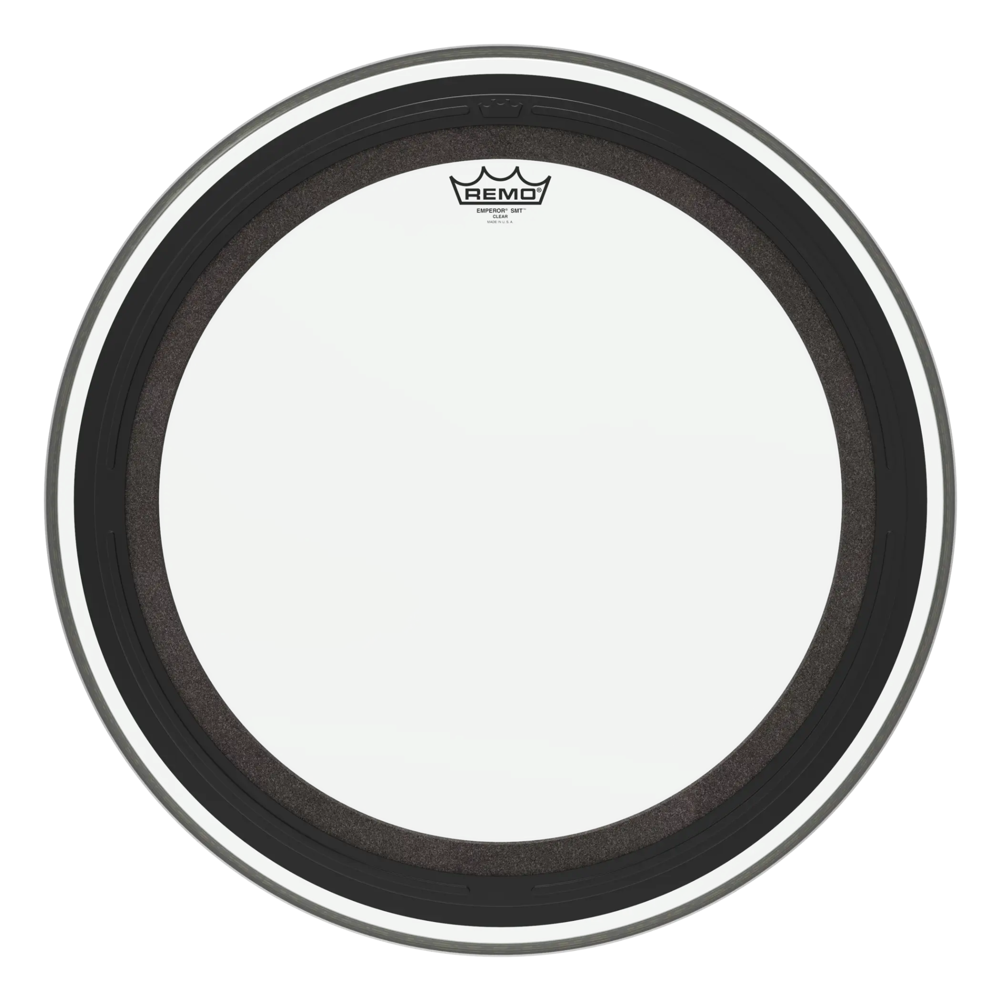 The Remo Emperor® SMT™ bass drumhead is a pre-muffled design featuring Sub Muffl® Technology. Constructed with 2-plies of 7-mil and 5-mil Clear or Coated film and an externally mounted dampening profile with free-floating acoustic foam, it enables the head and drum shell to maintain complete sound characteristics with additional attack and low-end frequencies. SMT technology allows a broad tonal spectrum of tuning ranges with controlled high and mid frequencies and deep, powerful low tones.