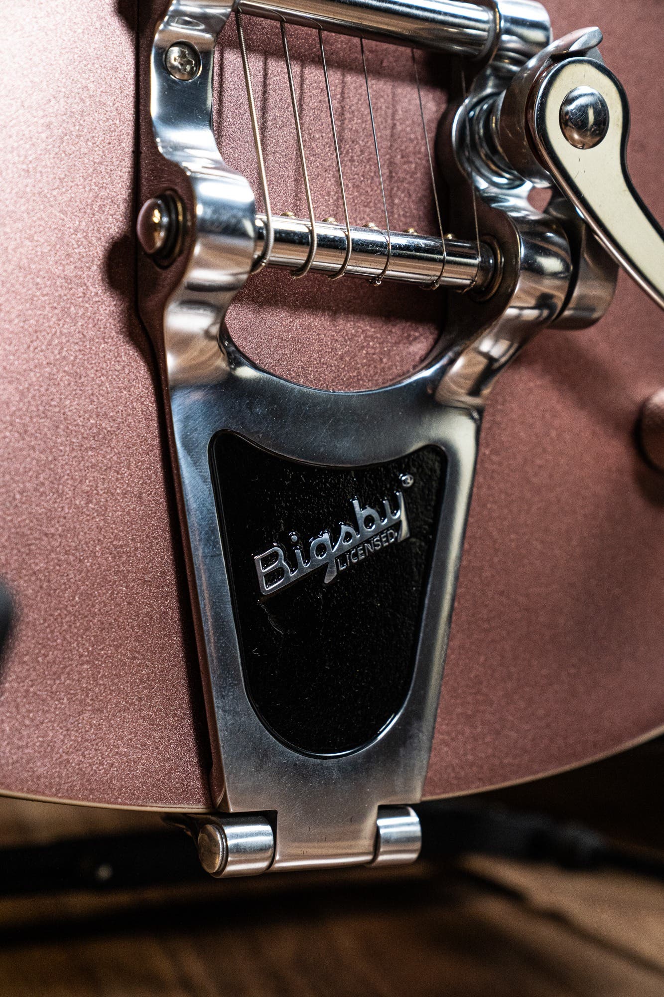 BIGSBY WITH SOFT TOUCH SPRING & ROLLER BRIDGE Our Bigsby tremolo system feels great and stays in tune all night long! We install a custom Soft Touch spring into all our Bigsbys for easy, smooth action. Our roller bridge works with our Pin-Lock tuners and Boneite nut to create a system that strings glide through every time.
