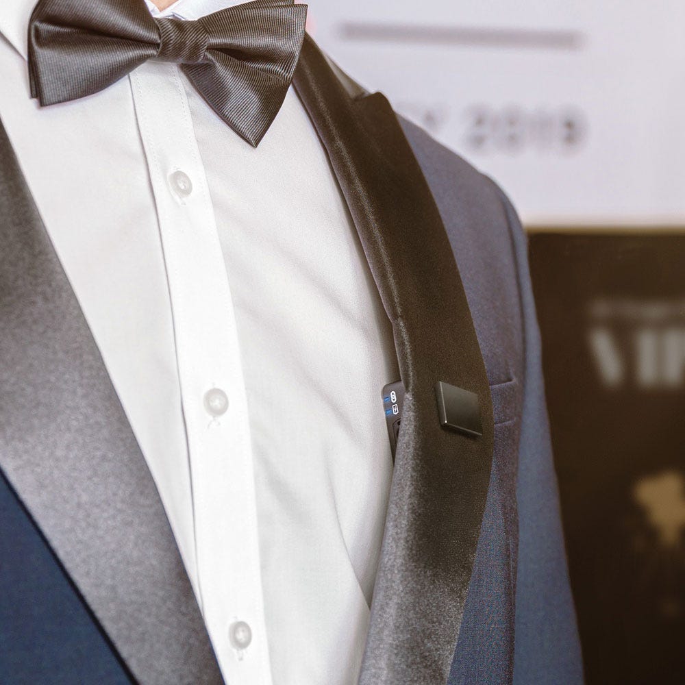 The MagClip GO is a powerful magnetic clip system that allows for easy positioning of a Wireless GO transmitter on talent. Clothing can be sandwiched between the magnet and clip for total flexibility. It can even be used to place the mic discreetly on an object in a scene or on a stage to capture dialogue.
