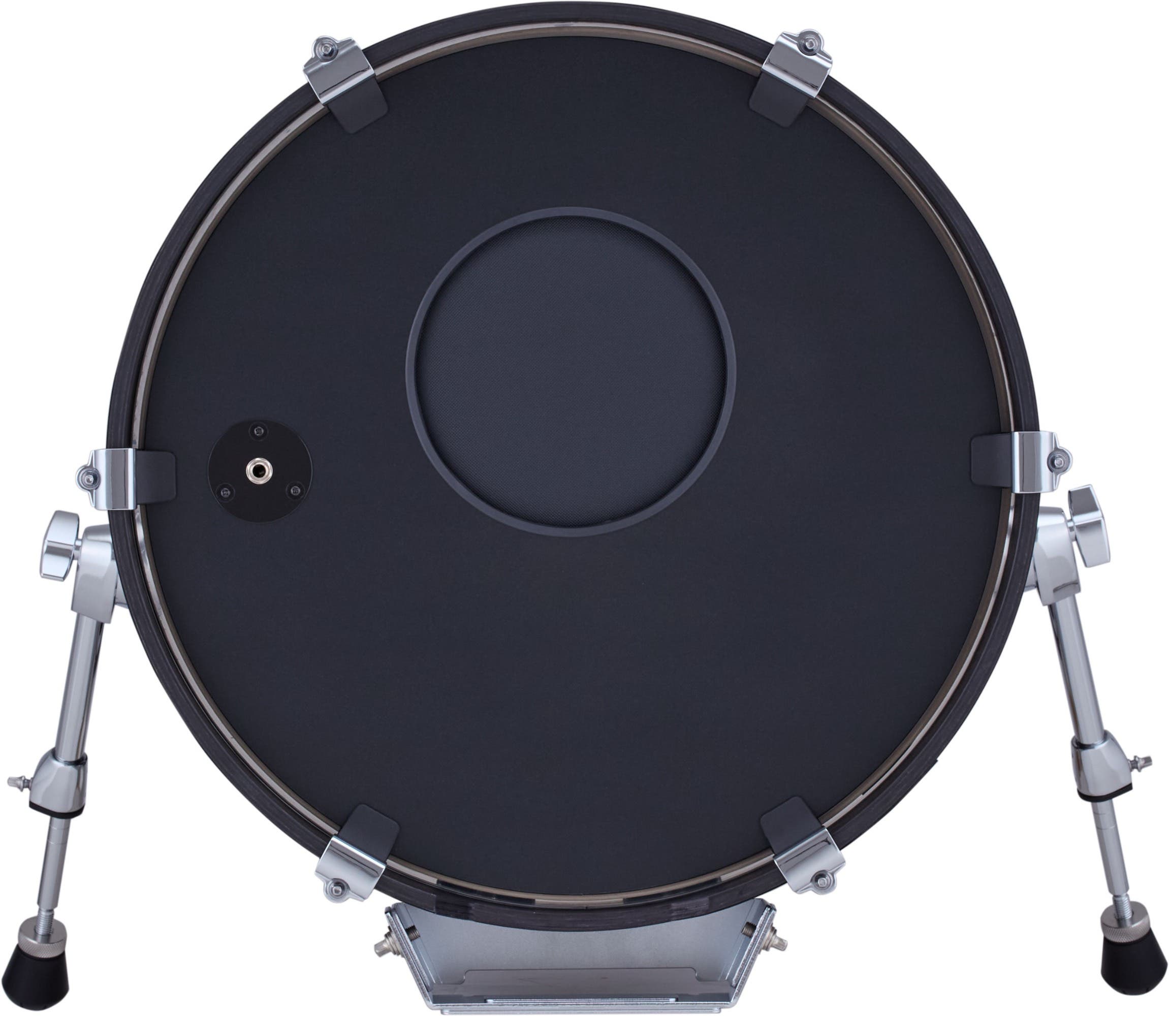 The KD-18-BK is a premium 18-inch kick drum pad that comes standard with the flagship TD716 V-Drums kit. It features a full-depth wood shell and an innovative pad sensor system built into an acoustic drumhead for authentic feel and rebound. The KD-18-BK also offers an updated leg design, improved pad durability, an adjustable pedal mounting plate, and a larger trigger area for double pedals and short beater settings.