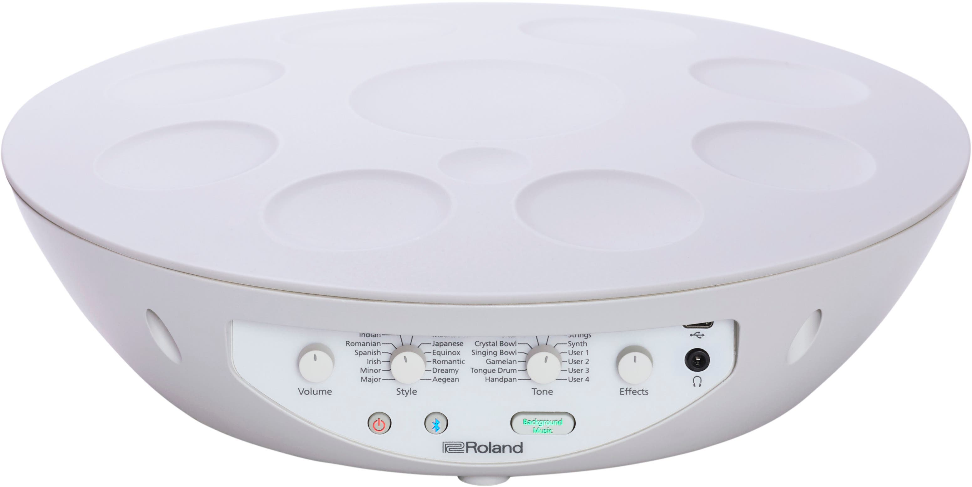 Mood Pan is made for mindful creators and modern musicians seeking a versatile and expressive new instrument. It blends the soulful resonance of acoustic handpans with multiple sound variations and other flexible features made possible with Roland’s advanced percussion technology. While many musical instruments require learning and skill development, Mood Pan can be enjoyed by everyone, with no experience or special technique necessary.