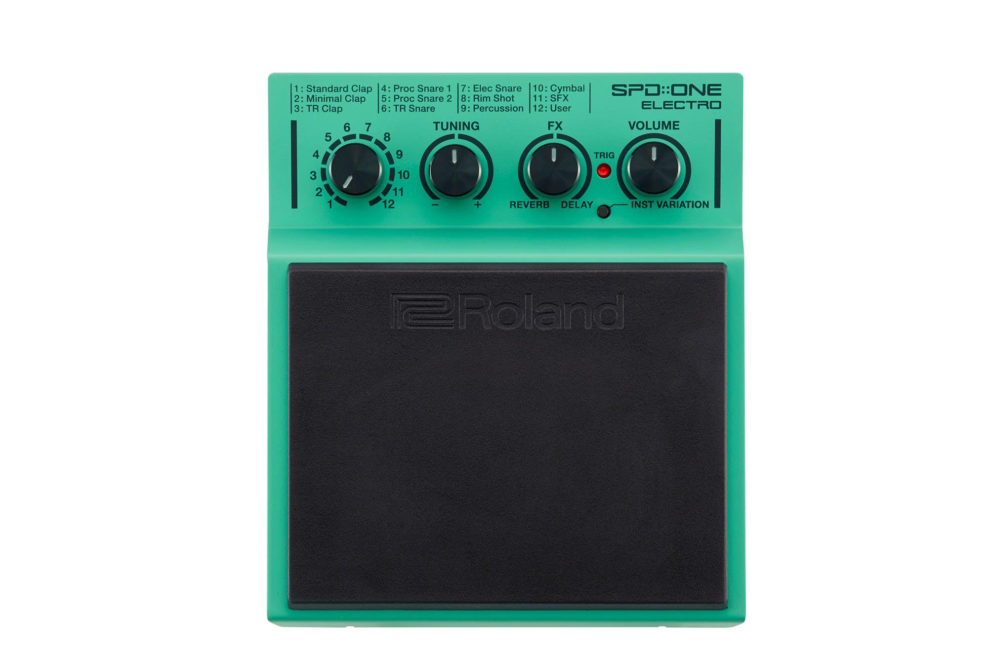 The SPD::ONE ELECTRO contains 22 iconic sounds, including drum and percussion sounds from Roland’s legendary TR-808 and TD-909 drum machines. Inside you’ll find 808 kicks, fat snares, 808 hi-hats, hand claps, and more. What’s more, the pitch of every instrument can be changed on the fly using a single knob. You can even add reverb or delay in seconds with a second knob. With the SPD::ONE ELECTRO, bolstering your backbeat with electronic sounds has never been simpler.