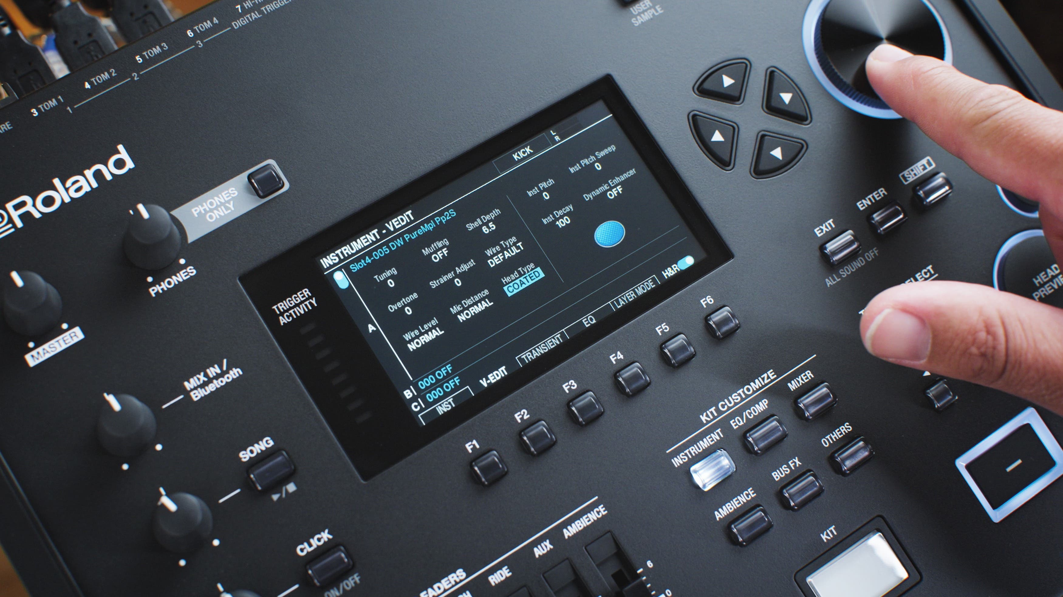 All the built-in sounds and V-Drums Instrument Expansions come finely tuned and ready to play, with no adjustment necessary. But if you like to personalize the details, enhanced V-Edit tools let you dive deeper than ever. Virtually adjust any drum or cymbal just as you would an acoustic instrument, from head types, damping, and tuning to snare wire tension, mic distance, and much more.