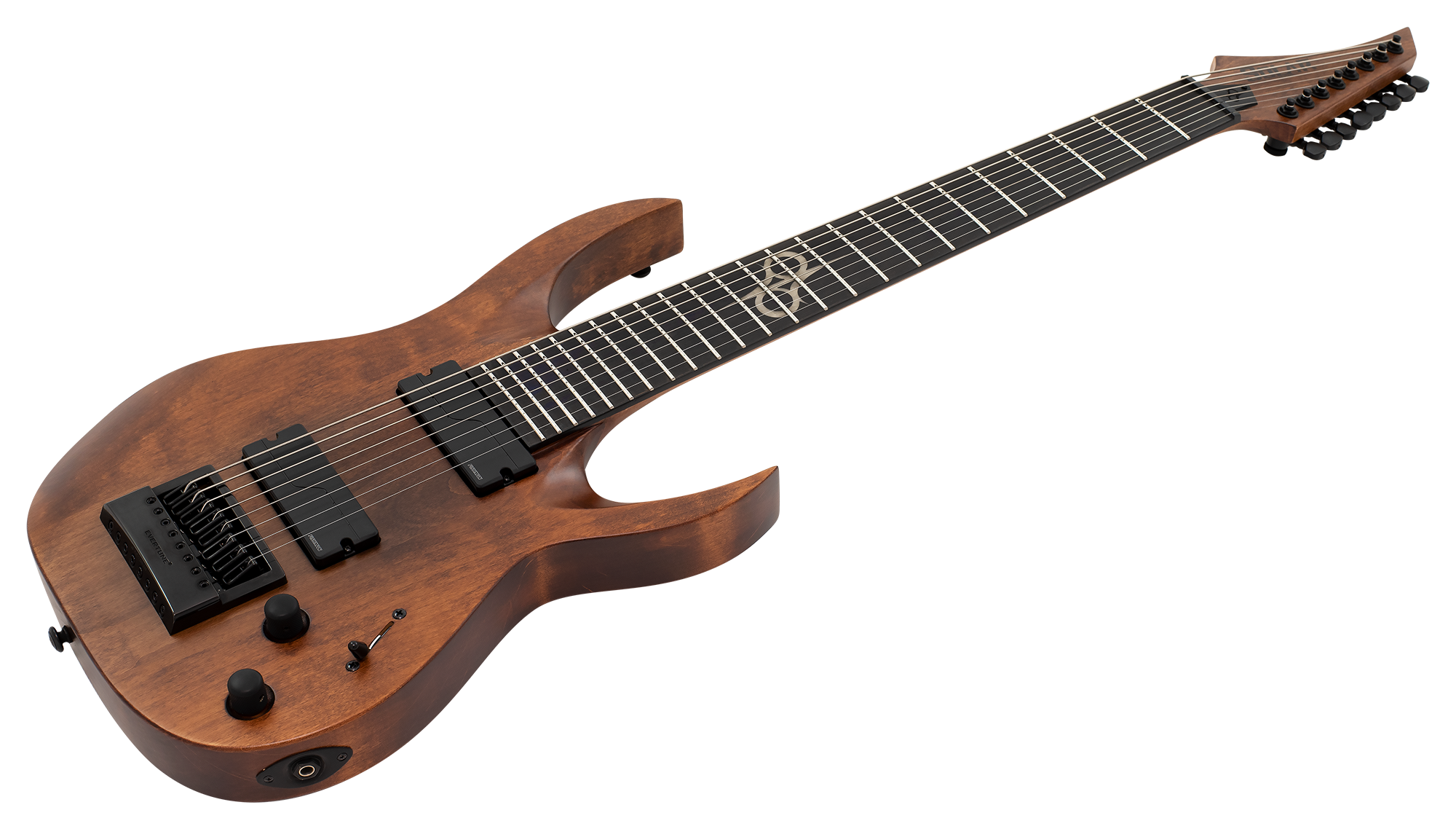 This Type A1.8AAN eight-string guitar boasts stealth looks, a distinctive cutaway scoop and a remarkable feature set, making it the ultimate, precise and professional instrument suitable for both stage and studio work. This guitar features the Evertune® constant-tension bridge—a reliable, fully-mechanical system that keeps the guitar in tune under any circumstances and is loaded with a pair of Fishman Fluence Modern active humbucker pickups revealing pure, uncorrupted and musical tone. The Type A1.8AAN features a set-thru neck/body joint design with 27” scale, an alder body, a fast, thin, comfortable maple neck, an ebony fingerboard with 24 stainless steel super-jumbo frets and ‘glow in the dark’ side dots for easy stage use. This well balanced 8-string guitar is loaded with Solar 18:1 locking tuners, PPS nut, five-way blade pickup switching and full access neck. Available in aged natural matte color with black hardware. NOTE: Due to the aged wood finish , these guitars willingly feature wood streaks, small paint buildups, dings, discolouration, evident wood body joints and random wood tonality s. In case you are searching for a perfectly homogenous and smooth finished guitar, we suggest that you have a look at a different model of our catalog.