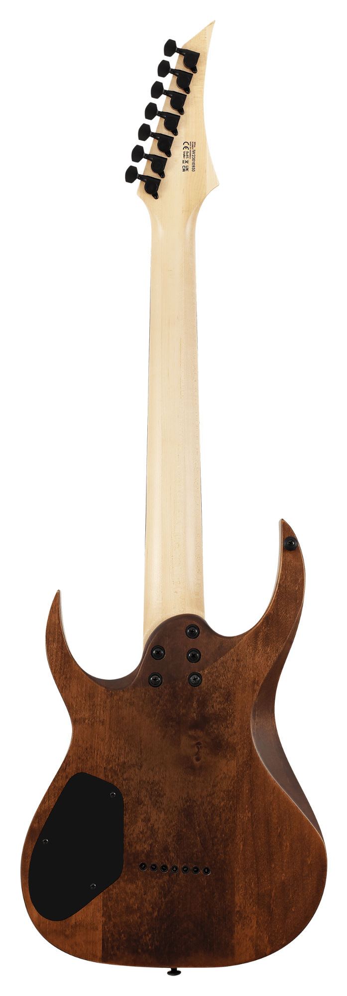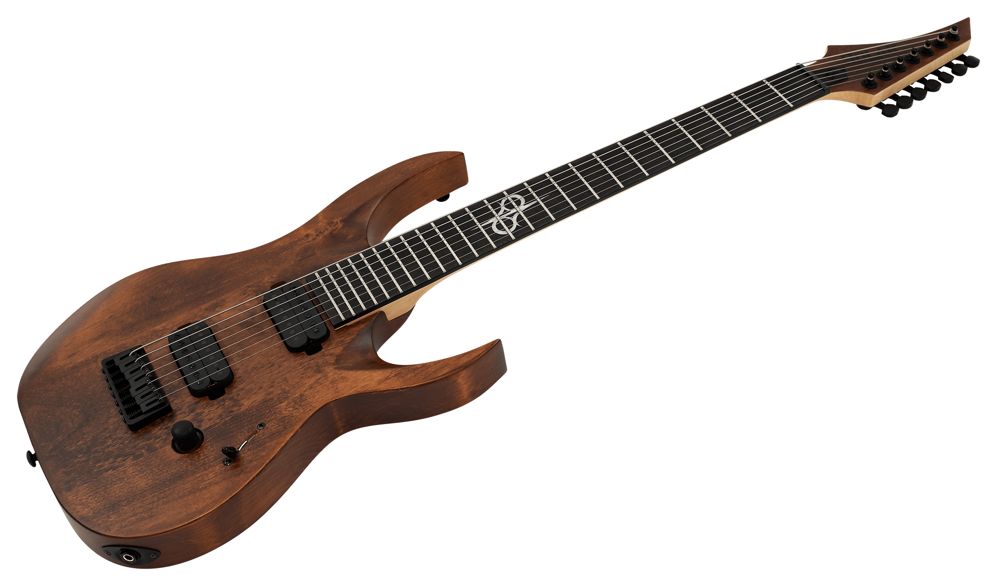 This Type AB2.7AN seven string guitar boasts stealth looks, a distinctive cutaway scoop and a remarkable feature set, making it a precise, professional instrument suitable for both stage and studio work. It comes loaded with a reliable string-through-body hardtail bridge and a set of Solar Standard pickups, which provide classic Alnico tone. The Type AB2.7AN is a bolt-on 25.5” scale instrument featuring an alderbody, comfortable maple neck and rosewood fingerboard with 24 super-jumbo frets. It also includes Solar 18:1 tuners, PPS nut, black matte hardware, five-way blade pickup switching and full access neck. Available in aged natural matte finish.