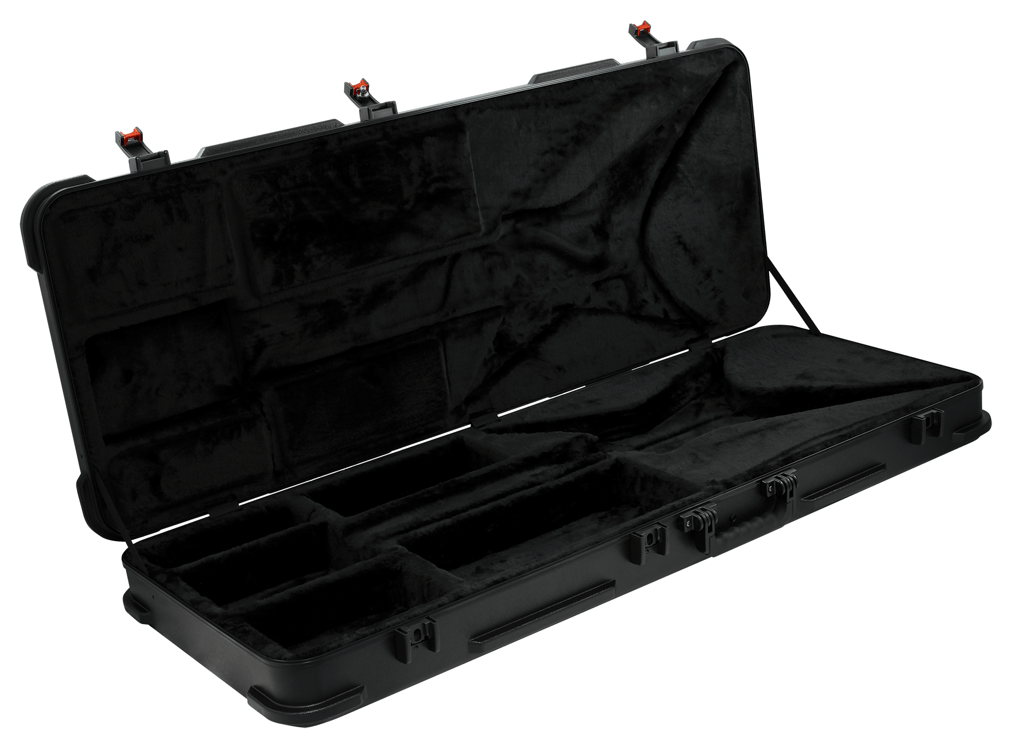 Solar Custom Molded Cases are specifically designed for Solar Instruments. Meticulous engineering efforts have matched the unique Solar curves to a case that will protect your Solar instrument for many years to come. Starting with a comfortable and durable handle balanced to each series type of instrument, the case feels robust but still very lightweight due to the ABS outer and low mass solid inner core materials. TSA approved heavy duty latches keep everything secure and make each case ready to tour. Inside, your instrument sits in a luxury plush interior with four compartments for strings, picks, strap, cables, chargers and other various accessories the modern musician needs at hand.