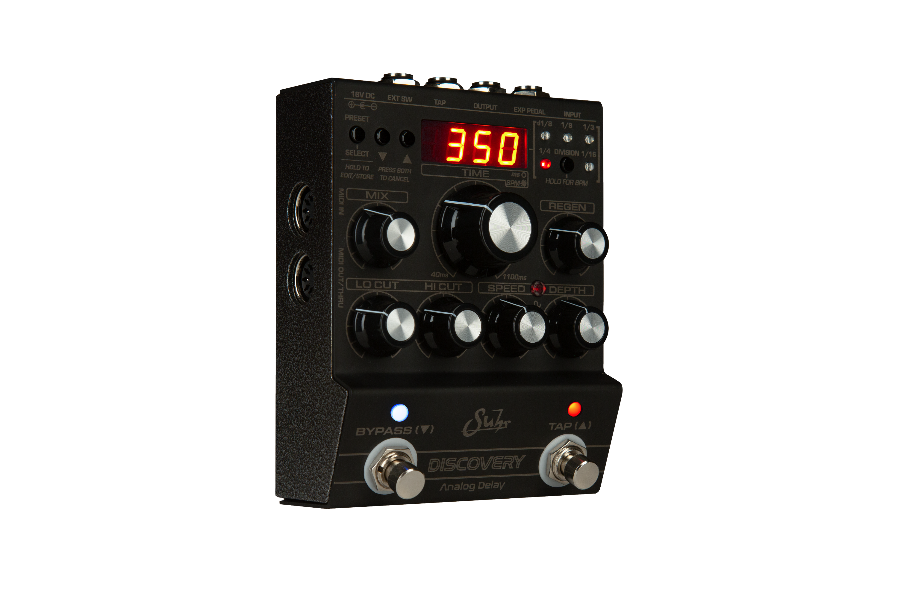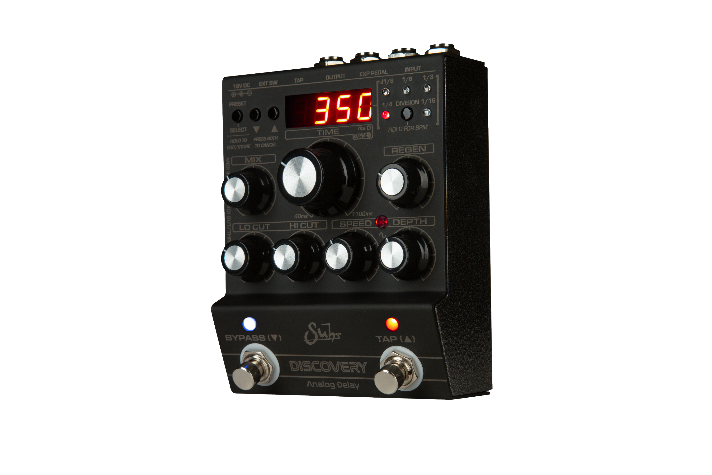 The long-standing mission of Suhr has been to bring the simplicity and tone of analog circuitry to today’s guitarists. The Suhr Discovery Analog Delay is the new revolutionary pedal designed by Kevin Suhr. The Discovery Analog Delay is the first of its kind for Suhr and the world.Retaining the tone vibe and creative inspiration of iconic analog delay units yet adding the versatility of the most modern and expandable delay pedals available today.