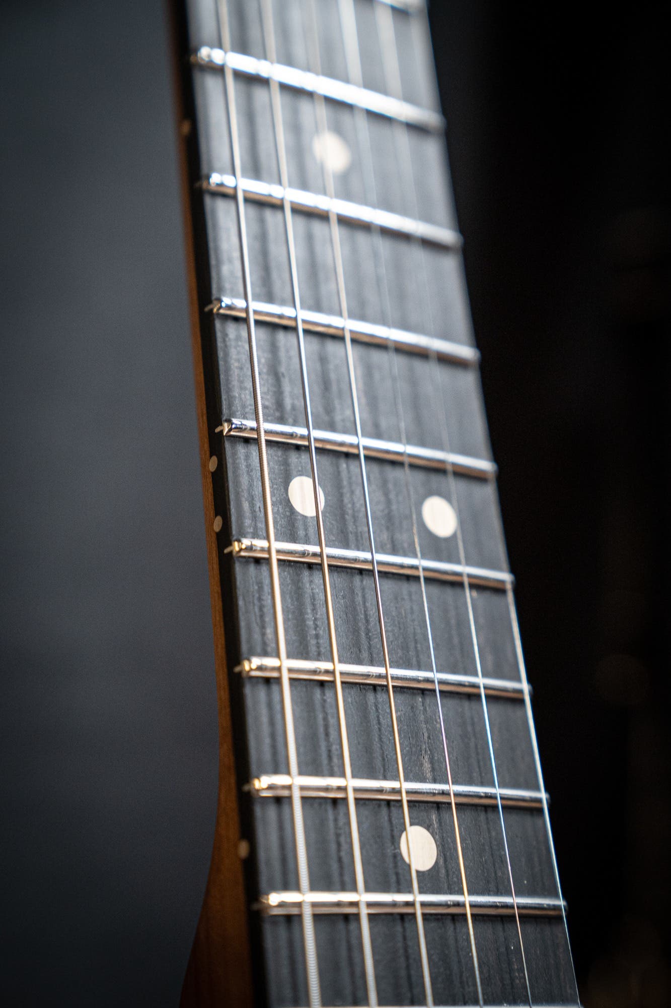 NECK Neck Wood: Roasted Maple Fingerboard Wood: Ebony Neck Finish: Oil Neck Back Shape: Pete Thorn 60's Soft V .830"-.910" Fingerboard Radius: 10"-14" Compound Frets: Jumbo Stainless Steel (.057"x.110") Nut: 1.687" Tusq Logo: Decal, Silver Outline