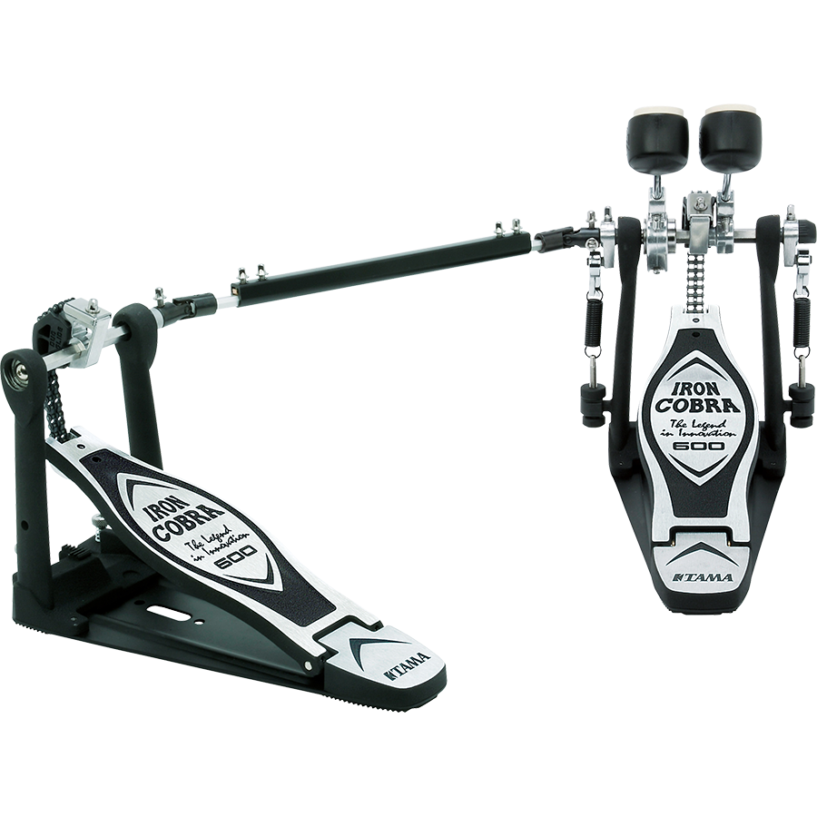 The newest addition to the Iron Cobra series, the Iron Cobra 600's most unique feature is a reversible cam called the "Duo Glide Cam." A simple adjustment allows fast changes between a true round "Rolling Glide" sprocket and an offset "Power Glide" sprocket. Drummers can choose the appropriate cam based on playing style, musical environment, and personal preference. In addition, the Iron Cobra 600 features a newly designed hinge for precise footboard action, and ball bearing equipped "Speedo-Ring" rocker cam.