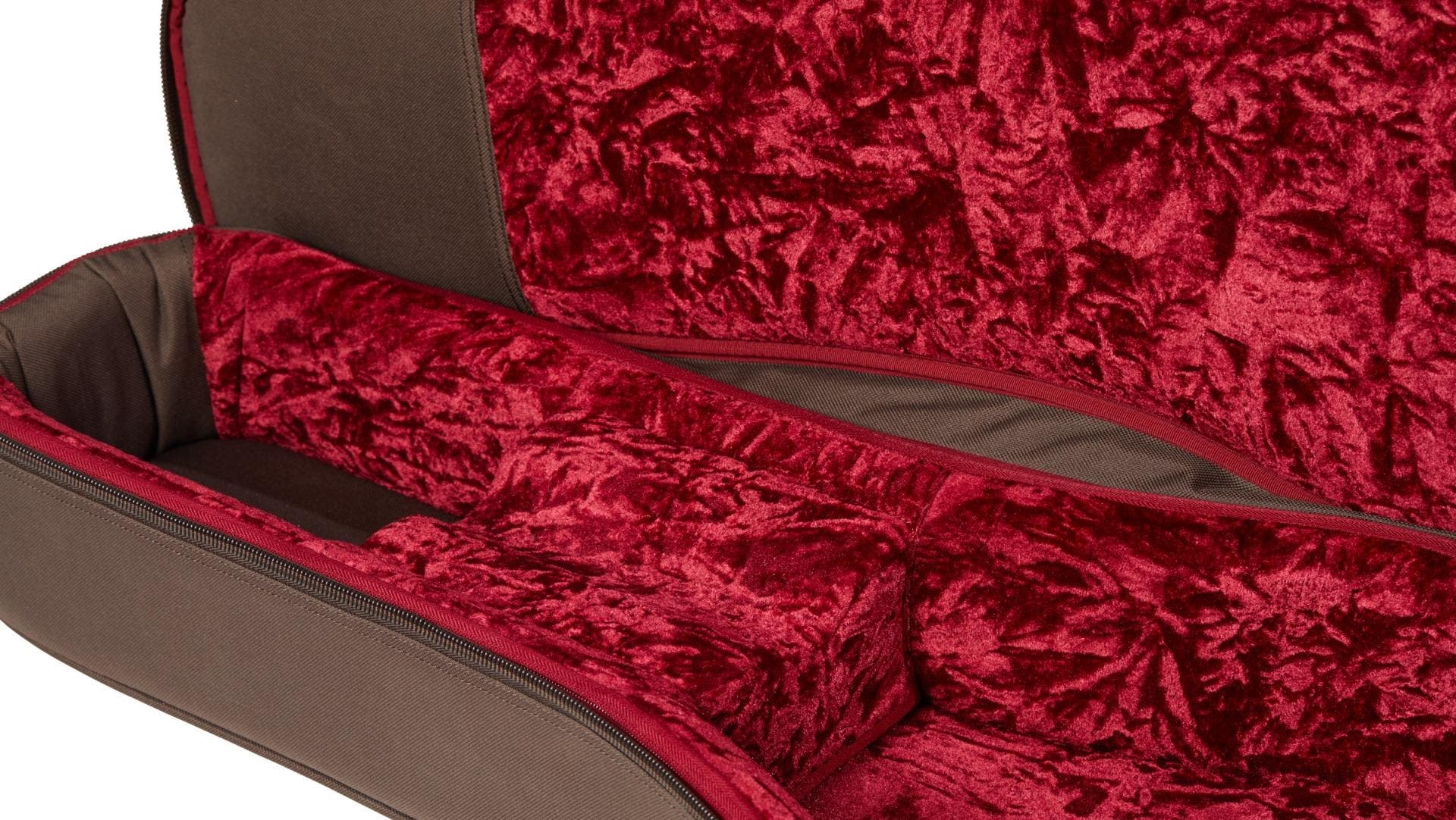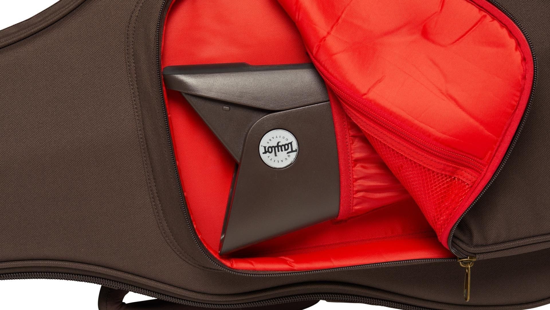 This newly designed AeroCase for GS Mini acoustic guitars was crafted to ensure protection and safe transportation without the heavy weight of a traditional hardshell case. Its sturdy frame is more than sufficient to prevent physical damage during travel or transport, but its material construction is less than one-third the weight of a hard case. Featuring multiple storage pockets, this AeroCase also includes a soft interior lining to prevent marks and scratches on your guitar. This case is exclusively fitted for Taylor GS Mini guitars. Model #5400-52