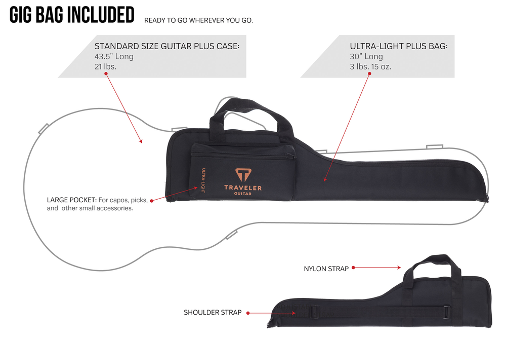 The Ultra-Light is the smallest, lightest, full-scale travel guitar on the market. The proprietary In-Body Tuning System uses standard tuning machines relocated into the body, eliminating the need for a headstock. You get the same full-scale playing experience you’re used to on an instrument that’s substantially shorter and liger than a typical full-size electric.