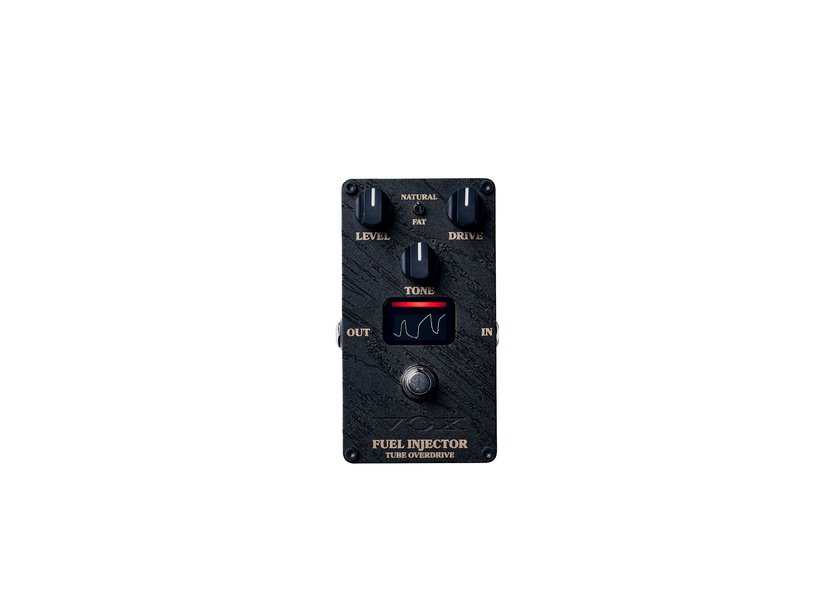 FUEL INJECTOR offers a distinctive overdrive with clean characteristics, rich harmonics, and a natural sense of compression and bite. Developed by amp manufacturer VOX, this overdrive pedal stands out for its amp-like distortion, in contrast to typical pedal distortions. Unlike effects that color the tone like preamp-style pedals, FUEL INJECTOR preserves its natural characteristics while distorting through Nutube, providing a tone that sounds as if your connected amp is pushed into even more distortion. Compared to many drive pedals, including TS-style ones, it features overwhelming harmonic components and a pronounced compression characteristic reminiscent of a tube amp. The harmonic richness created by distorting Nutube in multiple stages, along with the bias variations unique to tubes, produces a resonant tone, capturing the essence of an amp-like sound.