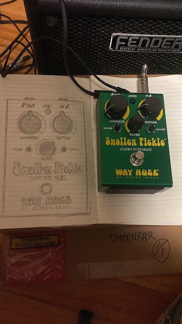 The Swollen Pickle Jumbo Fuzz MkIIS serves up the same burly high gain fuzz as the full-sized MkII but in a more petite package. With a twist of the Sustain control, you're taken from mild crunch to Armageddon! The Filter control retains its trademark insane range of heavily bandpass-filtered tones, distinguished by remarkable girth and sizzle, and the Loudness puts out enough volume to clobber any amp! The Scoop tone stack control elicits classic Swollen Pickle mid-scoop or a flat mid-frequency sweep, and the Crunch knob adjusts the compression intensity of the fuzz. Finally, under the hood, the MkIIS has two internal mini controls: Voice sets the intensity of the external scoop control from light to heavy mid cut, and Clip varies between two sets of clipping diodes for smooth or opened fuzz sustain.