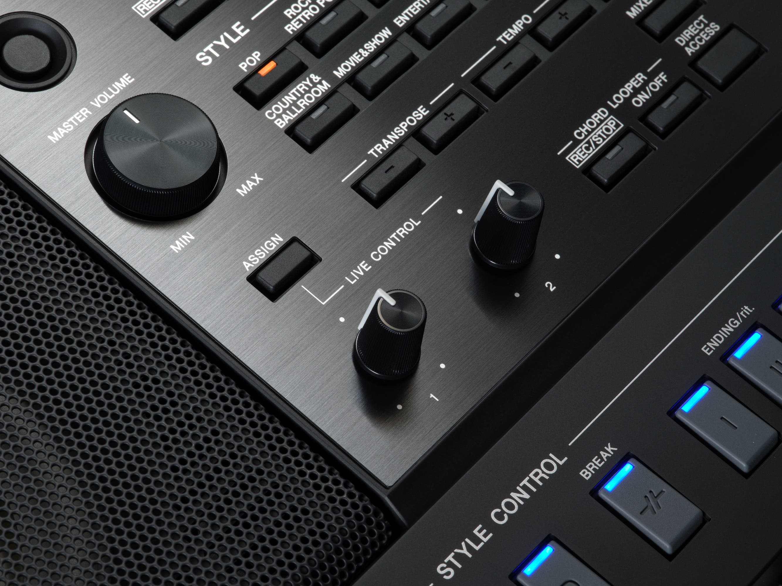 For ultimate performance flexibility, the PSR-SX920 includes 8 assignable panel buttons, 6 home screen shortcuts and 2 Live Control knobs, giving you rapid access to your favorite functions for instant adjustments.